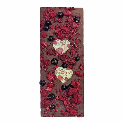 Tauchen Sie ein in die Welt der Liebe und des Genusses mit unserer Gourmet Milchschokolade mit Herz. Diese exquisite Schokolade beinhaltet herzförmige Toppings, gefriergetrocknete Himbeeren und schwarze Johannisbeeren. Perfekt für besondere Anlässe wie Valentinstag oder Muttertag, aber auch für alle Verliebten, die sich nach einem süßen Genuss sehnen. Zeigen Sie Ihre Zuneigung und Verbundenheit mit dieser liebevoll gestalteten Gourmet Milchschokolade, die gekonnt Romantik und Genuss vereint.