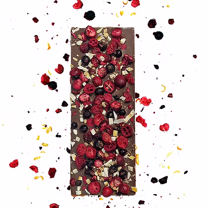 Verwöhnen Sie Ihren Gaumen mit unserer handgemachten Gourmet Milchschokolade mit Johannisbeere, Preiselbeere und Zitrone. Diese edle Schokoladentafel wiegt 130g und bietet eine einzigartige Geschmackskombination, die Sie lieben werden. Die fruchtige Säure der Johannisbeere und Preiselbeere harmoniert perfekt mit der süßen Milchschokolade, während die Zitrone eine erfrischende Note hinzufügt. Jede Tafel wird sorgfältig von unseren erfahrenen Chocolatiers hergestellt und ist ein wahrer Genuss für alle Schokoladenliebhaber. Genießen Sie diese exquisiten Aromen in jeder zartschmelzenden Bissen.