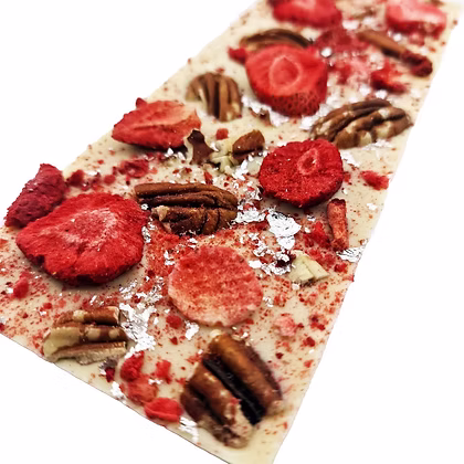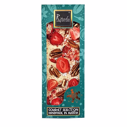 Gourmet weiße Schokolade; Erdbeere, Pekannuss, echt Silber 130g