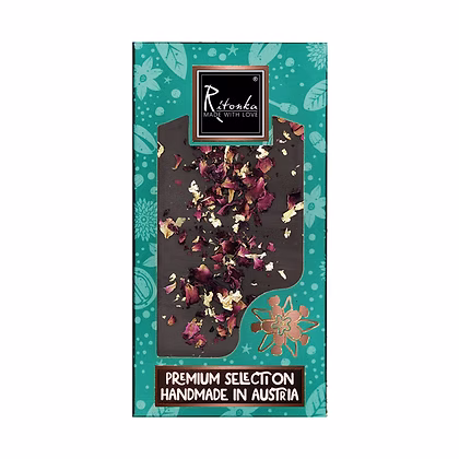 Mit feinster Bitterschokolade, echtem Blattgold und Rosenblätter zaubern wir für Dich einzigartige Delikatessen, die nicht nur das Auge erfreuen, sondern auch für eine wahre Geschmacksexplosion sorgen. Der intensive Schokoladengeschmack wird durch hochwertige Kakaobohnen aus nachhaltigem Anbau erzielt und durch eine perfekte Balance mit einer Prise Salz abgerundet. Pur als Snack für zwischendurch oder als besonderes Geschenk für Deine Liebsten – unsere handgemachte Bitterschokoladentafel ist ein wahrhaftiger Genuss für alle Naschkatzen! Das echte Blattgold und die Rosenblätter werden von Hand auf jede Tafel Schokolade aufgetragen und sorgen damit für ein Unikates Erscheinungsbild. Lass Dich von unserem handwerklichen Können verführen und tauche ein in die süße Welt von Ritonka!