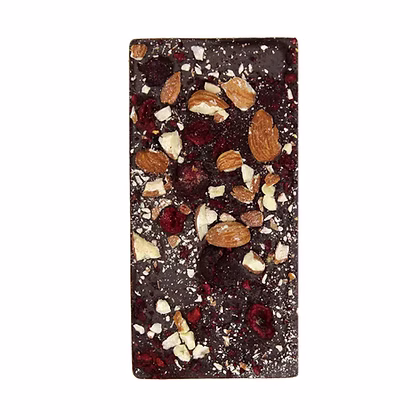 Mit feinster Bitterschokolade, Mandeln und Kirsche zaubern wir für Dich einzigartige Delikatessen, die nicht nur das Auge erfreuen, sondern auch für eine wahre Geschmacksexplosion sorgen. Der intensive Schokoladengeschmack wird durch hochwertige Kakaobohnen aus nachhaltigem Anbau erzielt und durch eine perfekte Balance mit einer Prise Salz abgerundet. Pur als Snack für zwischendurch oder als besonderes Geschenk für Deine Liebsten – unsere handgemachte Bitterschokoladentafel ist ein wahrhaftiger Genuss für alle Naschkatzen! Die Mandeln und Kirsche werden von Hand auf jede Tafel Schokolade aufgetragen und sorgen damit für ein Unikates Erscheinungsbild. Lass Dich von unserem handwerklichen Können verführen und tauche ein in die süße Welt von Ritonka!