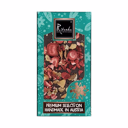 Mit feinster Bitterschokolade, Pflaume, Erdbeere und Walnuss zaubern wir für Dich einzigartige Delikatessen, die nicht nur das Auge erfreuen, sondern auch für eine wahre Geschmacksexplosion sorgen. Der intensive Schokoladengeschmack wird durch hochwertige Kakaobohnen aus nachhaltigem Anbau erzielt und durch eine perfekte Balance mit einer Prise Salz abgerundet. Pur als Snack für zwischendurch oder als besonderes Geschenk für Deine Liebsten – unsere handgemachte Bitterschokoladentafel ist ein wahrhaftiger Genuss für alle Naschkatzen! Die Pflaumen, Erdbeeren und Walnüsse werden von Hand auf jede Tafel Schokolade aufgetragen und sorgen damit für ein Unikates Erscheinungsbild. Lass Dich von unserem handwerklichen Können verführen und tauche ein in die süße Welt von Ritonka!