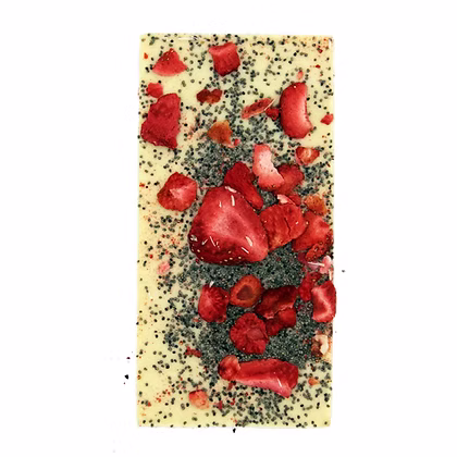 Premium weiße Schokolade – Mohn, Erdbeere 95g