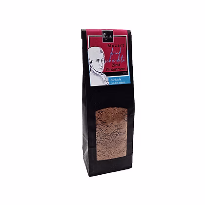 Zutaten: Zucker, Traubenzucker (25%), mageres Kakaopulver (21,3%), Emulgator: Lecithin; Salz, Zimt 0,4 %. Kann Spuren von Milch enthalten. Vor Wärme schützen und trocken lagern.